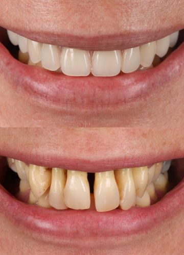Apakšžokļa zobu rindas atjaunošana ar 6 implantiem un pagaidu (fiksētu) akrila protēzi. Augšžoklī jaunas totālā protēze