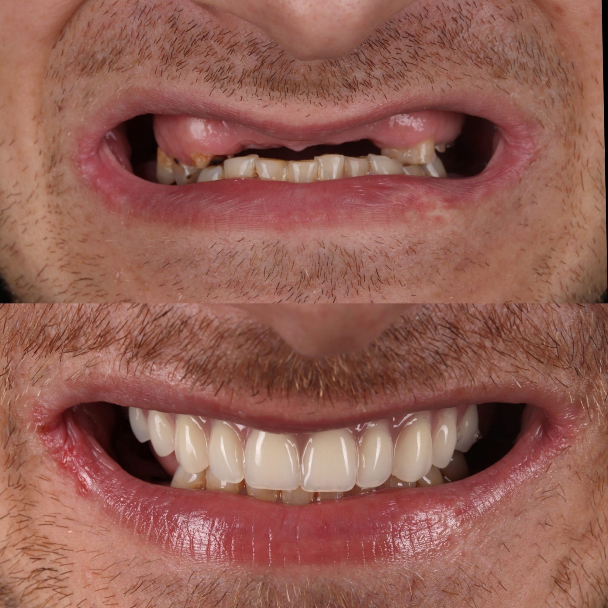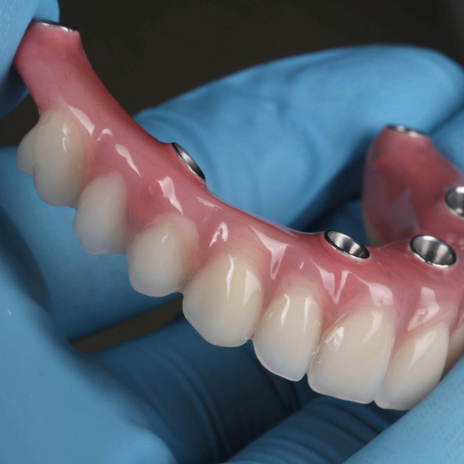 Augšžokļa zobu rindas atjaunošana - 6 implanti un tūlīteja akrila-titāna konstrukcija